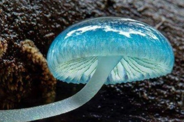 Native to Australia, these tiny mushrooms are bright sky-blue—like something out of a fairy tale! When they’re young, their caps are almost round little balls; as they grow up, they puff out a bit and get slightly sticky.
